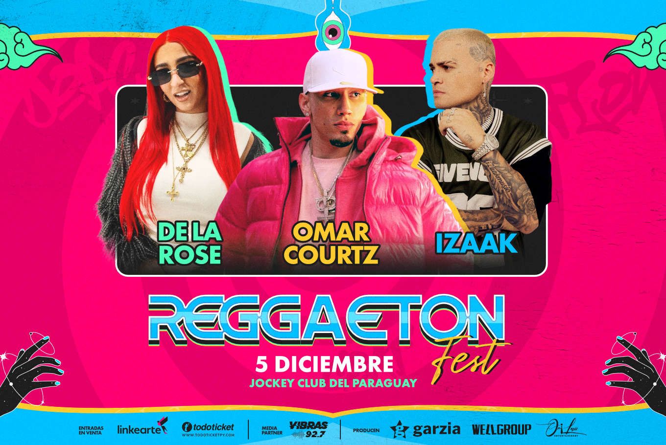 El Reggaeton Fest regresa a Paraguay el 5 de diciembre en la Jockey Club del Paraguay con De La Rose, Omar Courtz e Isaak, prometiendo una experiencia musical única con una producción de alto nivel y energía desbordante. Este es el evento de reggaetón más importante del país.