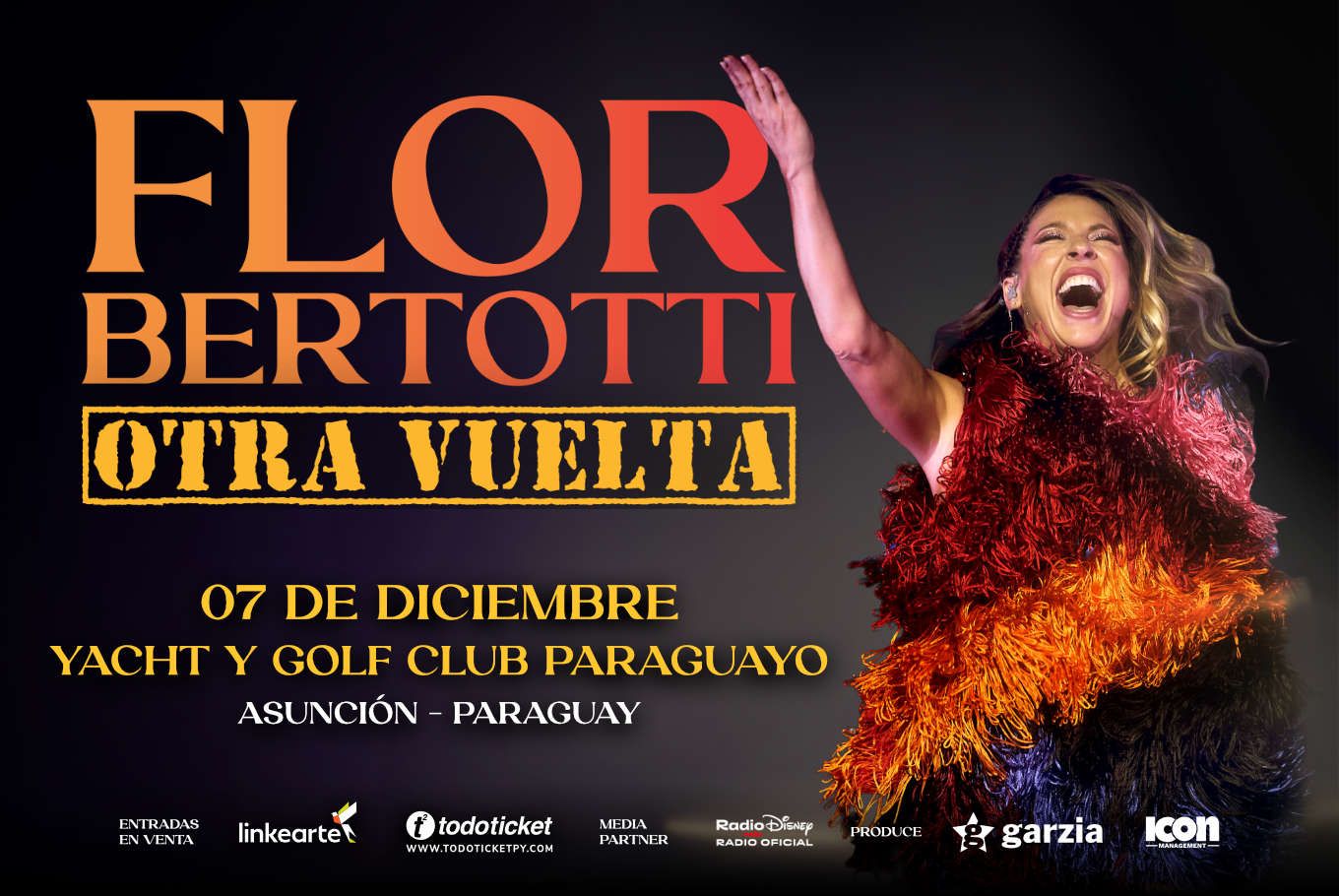 7th of December | Yacht & Golf Club Paraguayo Flor Bertotti returns to the stage with the Another Turn Tour, a tour that celebrates the 20th anniversary of Floricienta, the phenomenon that marked an entire generation and continues to win hearts across Latin America.